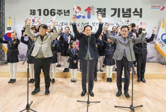 오산시(시장 이권재)는 1일 오산오색문화체육센터에서 ‘제106주년 3·1절 기념식’을 개최하고, 순국선열들의 희생과 애국정신을 기리며 독립운동의 의미를 되새겼다.