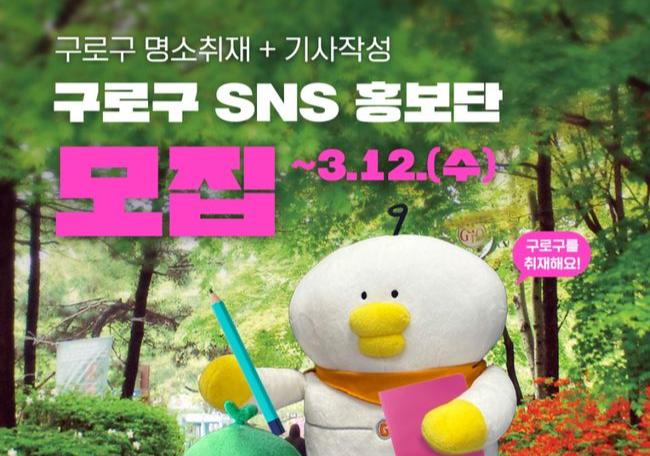 구로구가 3월 7일부터 12일까지 `구로구 소셜네트워크 서비스(SNS) 홍보단`을 모집한다.
