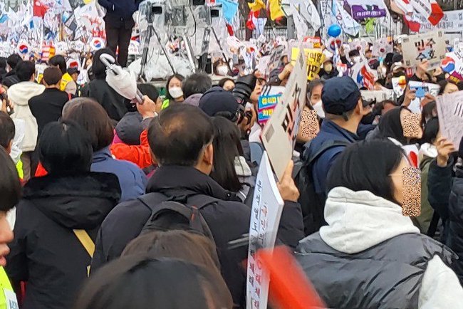 지난 3‧1절 집회 시 광화문역에 모인 집회 참가자들