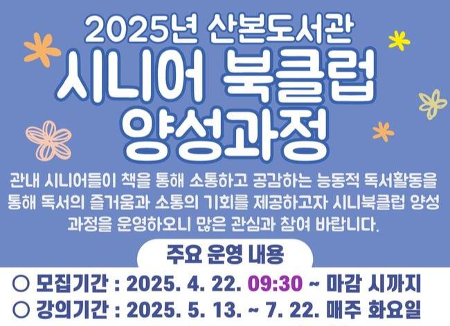 군포시 산본도서관, `2025년 시니어 북클럽 양성과정` 운영