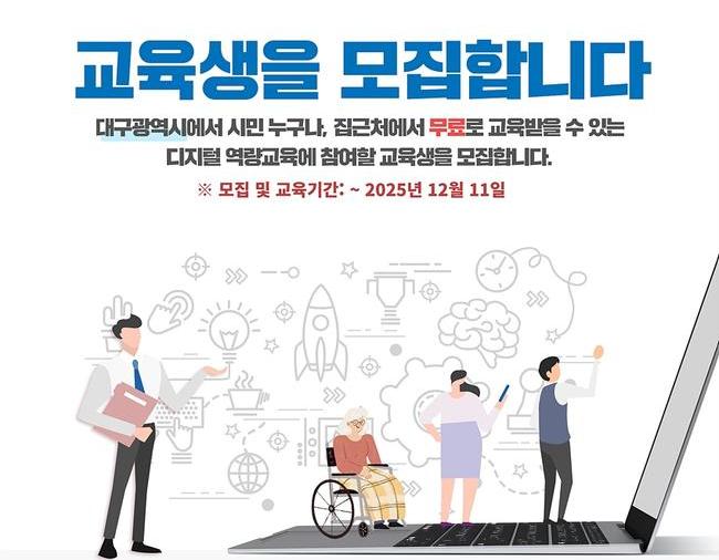 대구광역시는 디지털 소외계층의 정보격차 해소와 디지털 역량 강화를 위해 오는 5월 12일(월)부터 `2025년 디지털배움터 교육`을 운영한다.