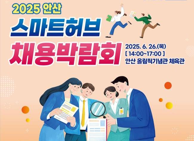 안산시(시장 이민근)는 오는 26일 안산 올림픽기념관 체육관에서 `2025 안산 스마트허브 채용박람회`를 개최한다고 12일 밝혔다.