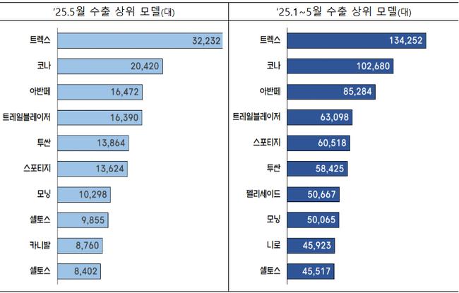 다만 미국 시장에서는 관세 부과와 전년도 호실적에 따른 기저효과 등으로 자동차 수출이 27.1% 감소했다. 이에 따라 5월 전체 자동차 생산량은 전년 대비 3.7% 감소한 35만9천 대로 집계됐다.