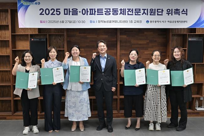 광주광역시 서구(구청장 김이강)는 27일 창작농성골커뮤니티센터에서 `2025 마을·아파트 공동체 전문지원단` 위촉식을 갖고 마을·자치공동체 활성화를 위한 민관 협력 현장 지원 체계 강화에 나선다.
