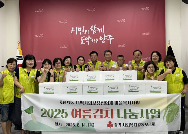 양주시 회천1동 지역사회보장협의체(공동위원장 최창식)는 지난 14일 여름철을 맞아 폭염으로 어려움을 겪는 취약가구를 위해 ‘여름김치 나눔사업’을 실시했다. 이번 사업은 무더위 속 식사 준비에 어려움을 겪는 독거노인과 장애인 가구 등 지역 내 취약계층을 지원하고, 정서적 돌봄까지 제공하기 위해 마련됐다.