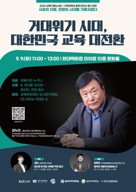 • 성북문화재단, 지역 대학과 협력해 시리즈 명사 강연 ‘사유의 지평, 전환의 시대를 가로지르다’ 개최