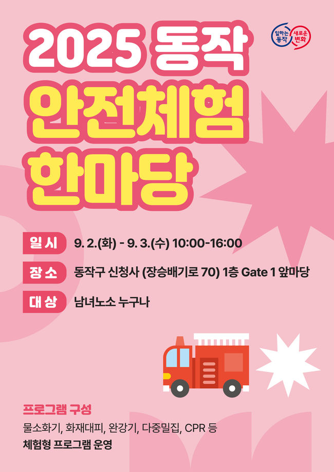구는 체험 참여자에게 소화패치, 방연마스크 등 교육용 교보재를 제공하며, 동작소방서 등 유관기관과 협력해 행사를 내실 있게 운영할 계획이다.
