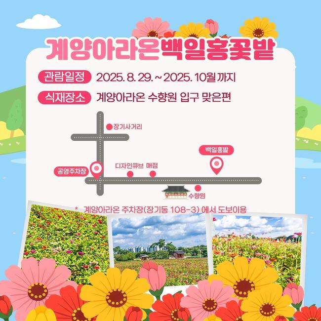 인천광역시 계양구(구청장 윤환)는 계양아라온에 가을의 정취를 더할 24,979㎡(약 7,550평) 규모의 백일홍 꽃밭을 조성해 8월 29일부터 시민들을 맞이한다고 밝혔다.