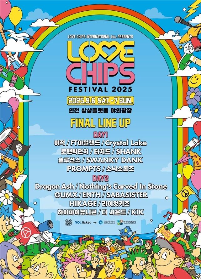 인천광역시(시장 유정복)와 인천관광공사는 오는 9월 6일부터 7일까지 양일간 인천 상상플랫폼 야외광장에서 글로벌 음악축제 `러브칩스 페스티벌 2025`를 개최한다고 밝혔다.
