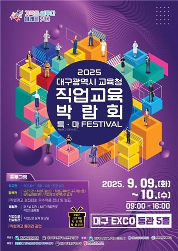 대구시교육청은 9월 9일(화)부터 9월 10일(수)까지 2일간 대구 엑스코 동관 5홀에서 2025. 대구광역시교육청 직업교육박람회 `특·마 Festival` 행사를 개최한다.