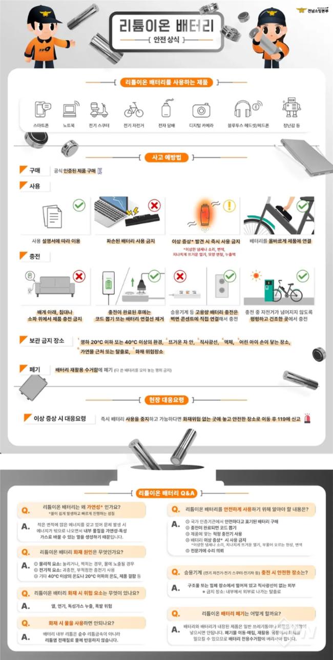 리튬이온 배터리 안전수칙 안내 포스터.