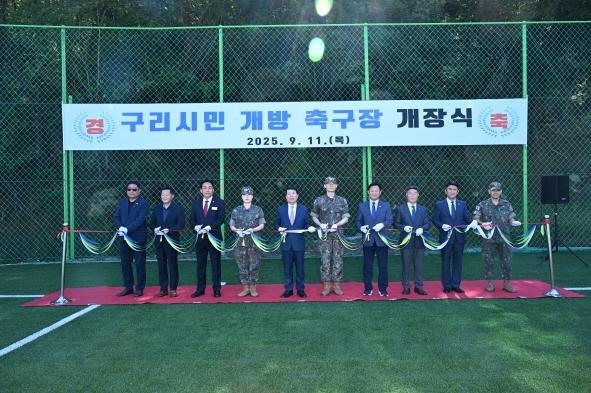 구리시(시장 백경현)는 9월 11일 오전 10시 국군구리병원 내 조성된 축구장의 개장식을 개최했다고 밝혔다. 이번 축구장은 구리시와 국군구리병원이 지난 2017년 민선 6기에 체결한 상생협력 업무협약에 따라 추진된 사업으로, 군과 지역사회가 함께 활용하는 체육공간이라는 점에서 의미가 크다.