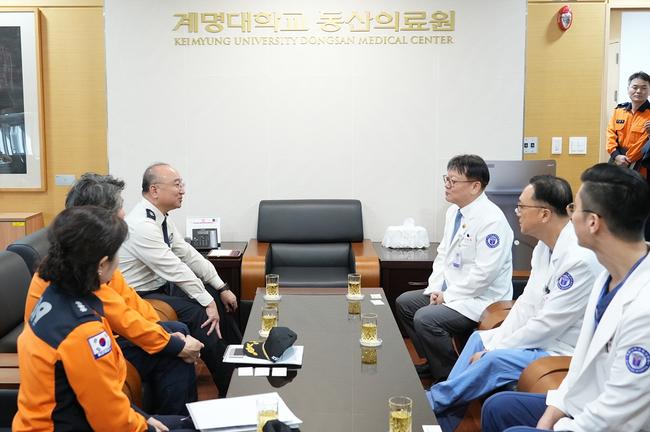 이번 간담회는 시민의 안전과 생명 보호를 최우선 목표로, 대구소방안전본부와 계명대학교 동산의료원 간 소통과 협력체계를 더욱 공고히 하기 위해 마련됐다.